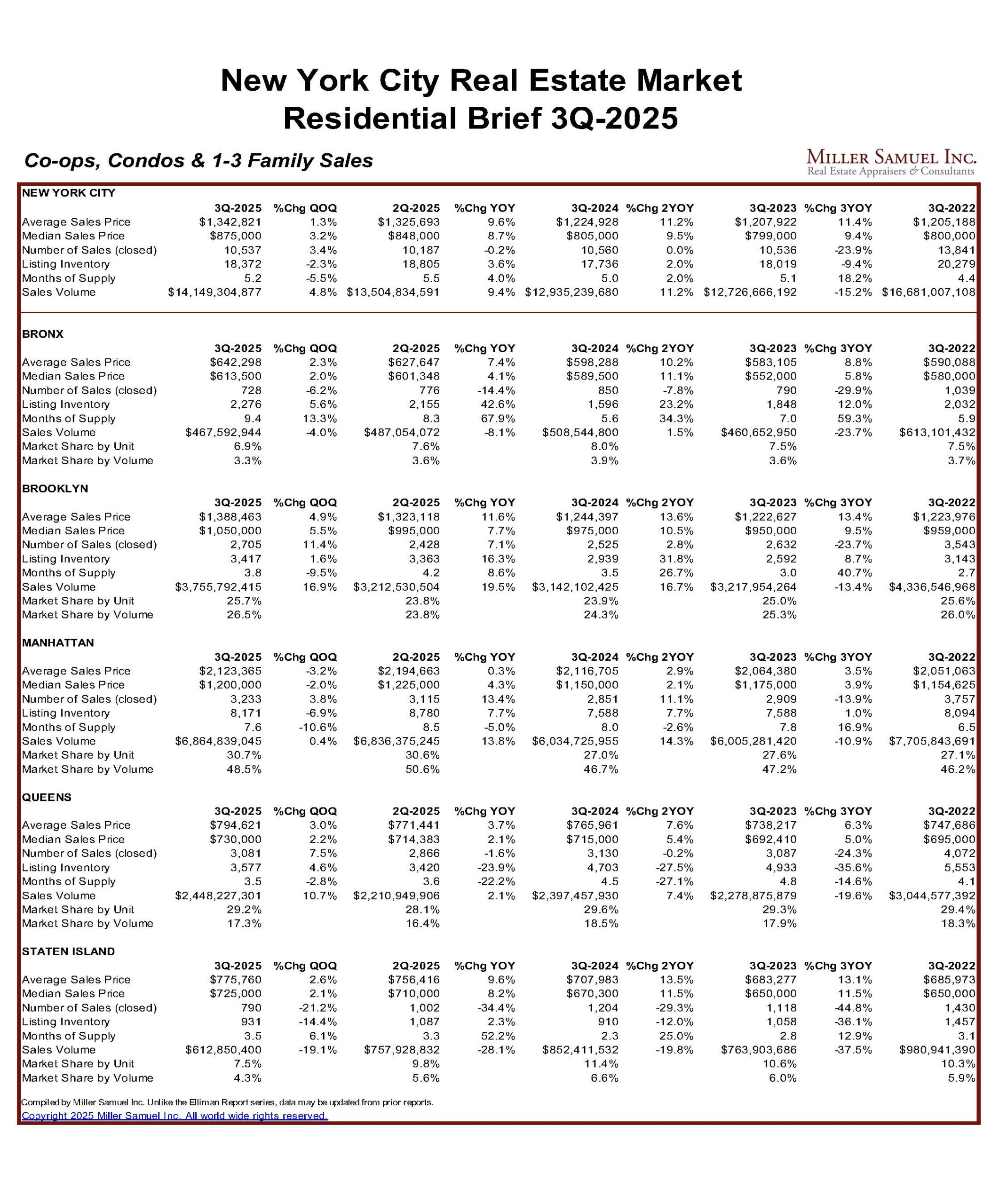 Miller Samuel New York City Market Brief 3Q 2025 [3 Year Comparison]