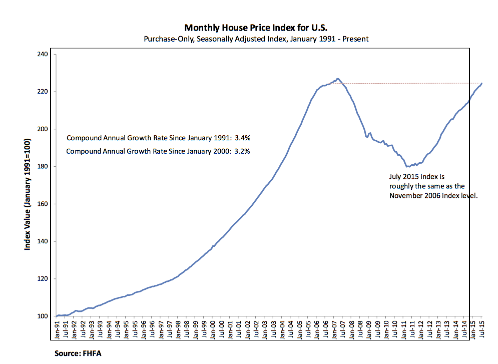 Graziosi cites the FHFA trend line as breaking even with the 2006 peak. Yes, based on FHFA methodology that’s certainly true and taken directly from the most recent FHFA report. I do feel the need to split hairs here since his “brushstroke style” of simplifying everything misaligns with reality. He says: