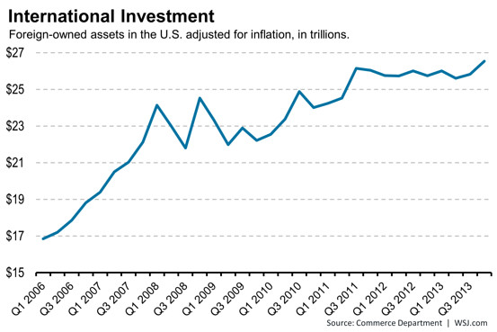 These gains are largely due to the rising US stock prices rather than more investment. However in the housing sector, I do think rising property values are attracting even more new capital for investment – whether for new development or unit purchases. We can see this in markets like New York City and Miami. Foreign investors seem to be chasing safety and a long term equity play.