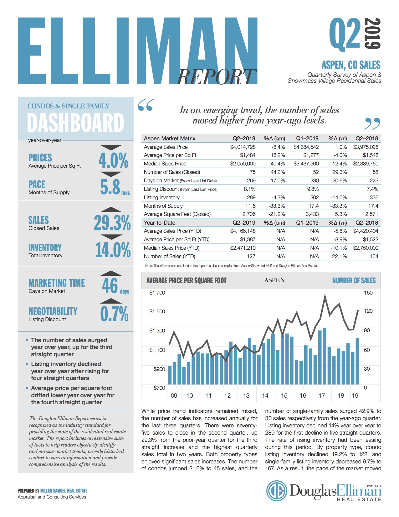 While price trend indicators remained mixed, the number of sales has increased annually for the last three quarters. There were seventyfive sales to close in the second quarter, up 29.3% from the prior-year quarter for the third straight increase and the highest quarterly sales total in two years. Both property types enjoyed significant sales increases. The number of condos jumped 21.6% to 45 sales, and the…