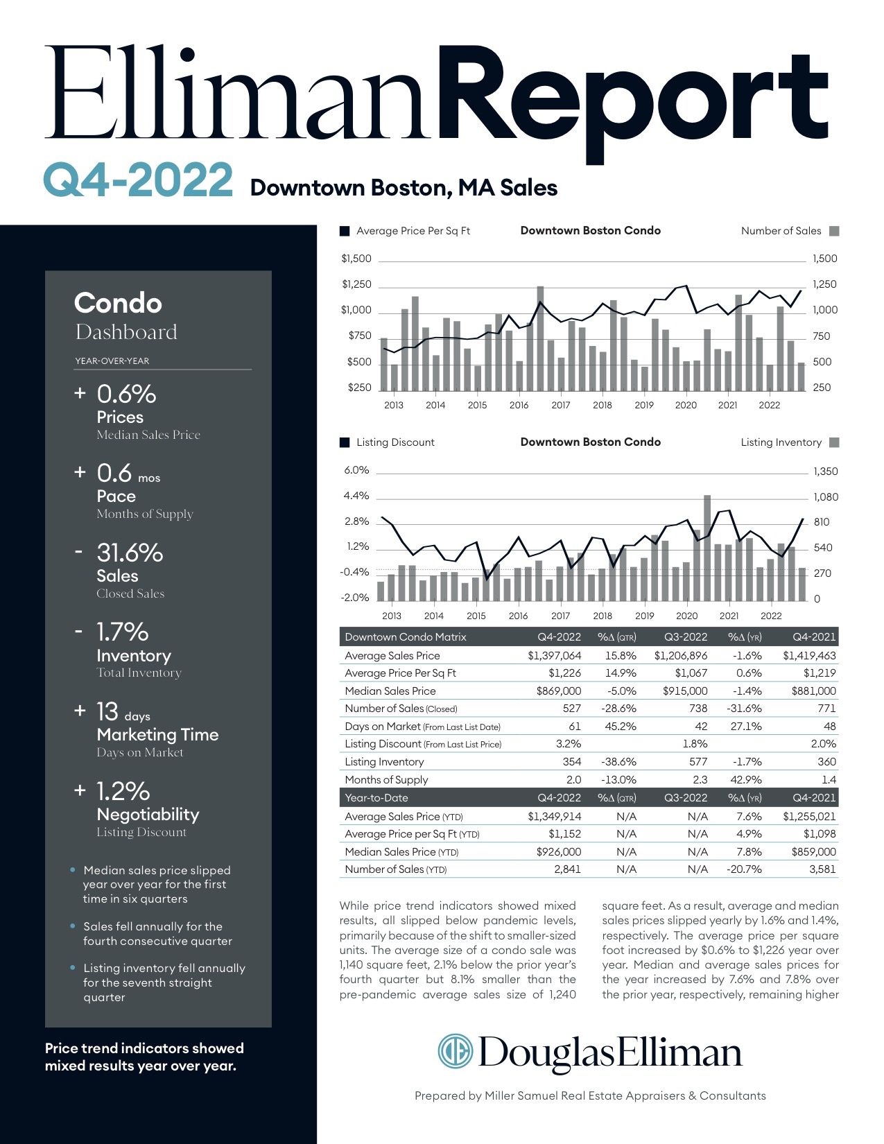 While price trend indicators showed mixed results, all slipped below pandemic levels, primarily because of the shift to smaller-sized units. The average size of a condo sale was 1,140 square feet, 2.1% below the prior year’s fourth quarter but 8.1% smaller than the pre-pandemic average sales size of 1,240…