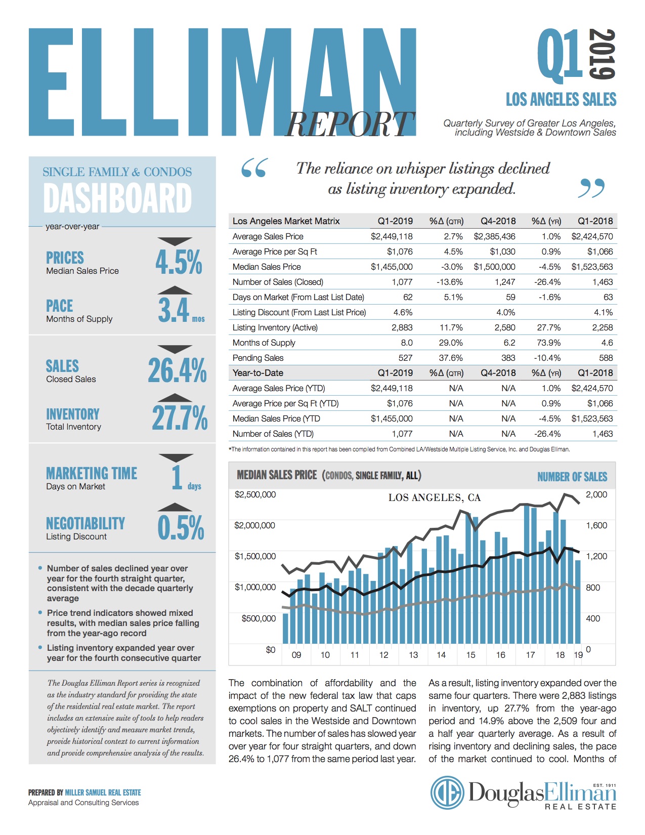 The combination of affordability and the impact of the new federal tax law that caps exemptions on property and SALT continued to cool sales in the Westside and Downtown markets. The number of sales has slowed year over year for four straight quarters, and down 26.4% to 1,077 from the same period last year…
