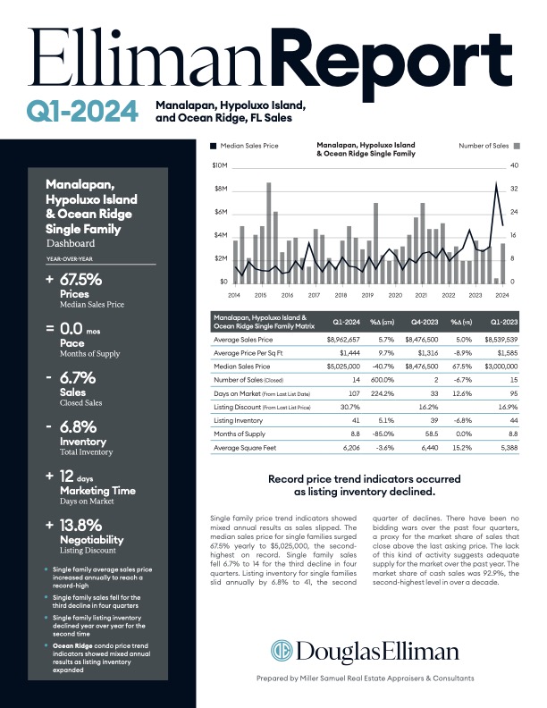 Single family price trend indicators showed mixed annual results as sales slipped. The median sales price for single families surged 67.5% yearly to $5,025,000, the second highest on record. Single family sales…