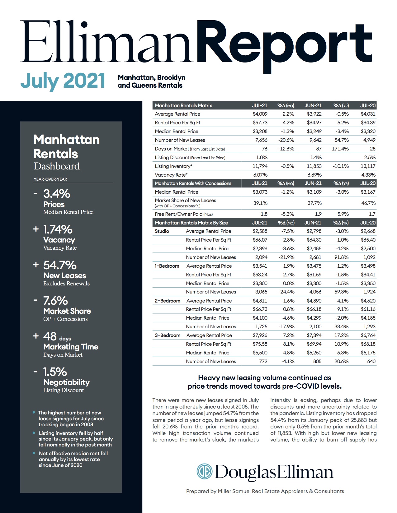 MANHATTAN There were more new leases signed in July than in any other July since at least 2008. The number of new leases jumped 54.7% from the same period a year ago, but lease signings fell 20.6% from the prior month’s record…