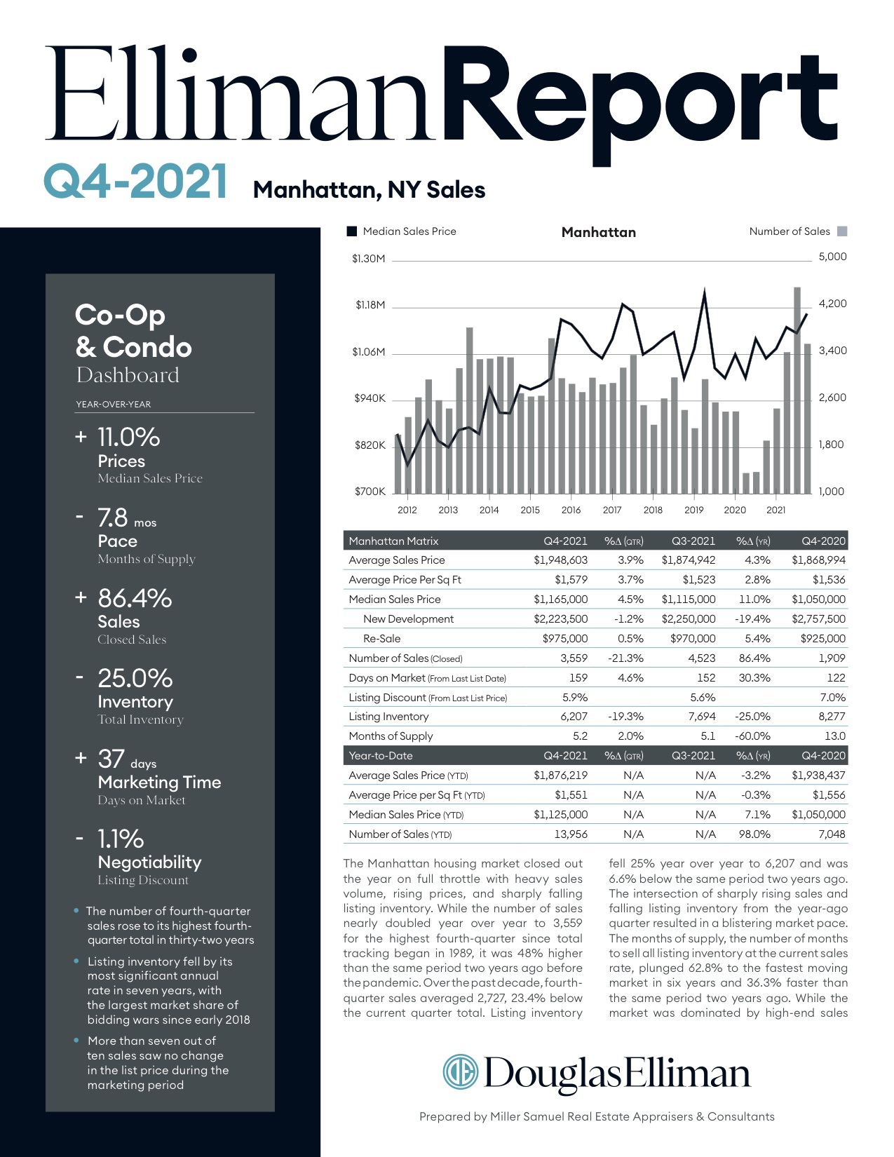 The Manhattan housing market closed out the year on full throttle with heavy sales volume, rising prices, and sharply falling listing inventory. While the number of sales nearly doubled year over year to 3,559 for the highest fourth-quarter since total tracking began in 1989, it was 48% higher than the same period two years ago before…