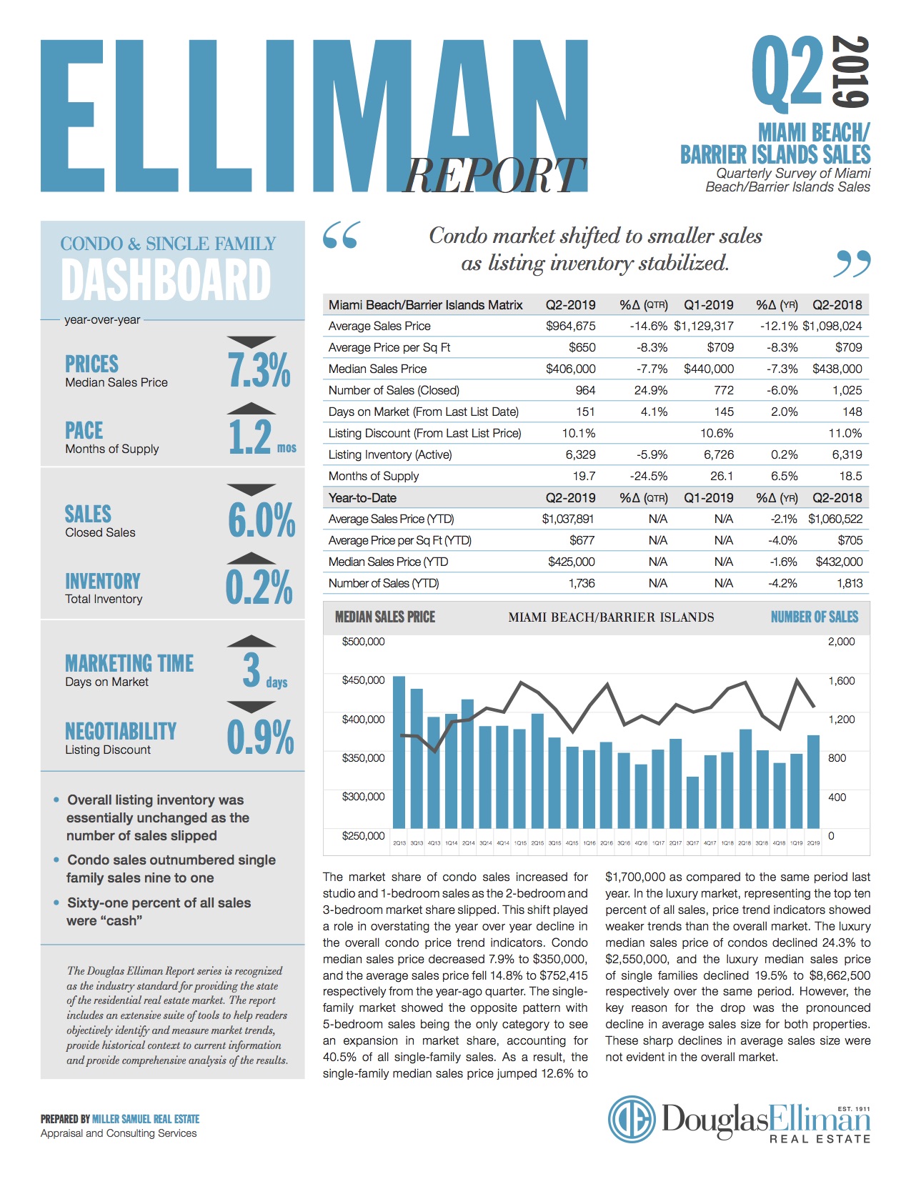 The market share of condo sales increased for studio and 1-bedroom sales as the 2-bedroom and 3-bedroom market share slipped. This shift played a role in overstating the year over year decline in the overall condo price trend indicators. Condo median sales price decreased 7.9% to $350,000, and the average sales price fell 14.8% to $752,415 respectively from the year-ago quarter. The singlefamily market showed the opposite pattern with…