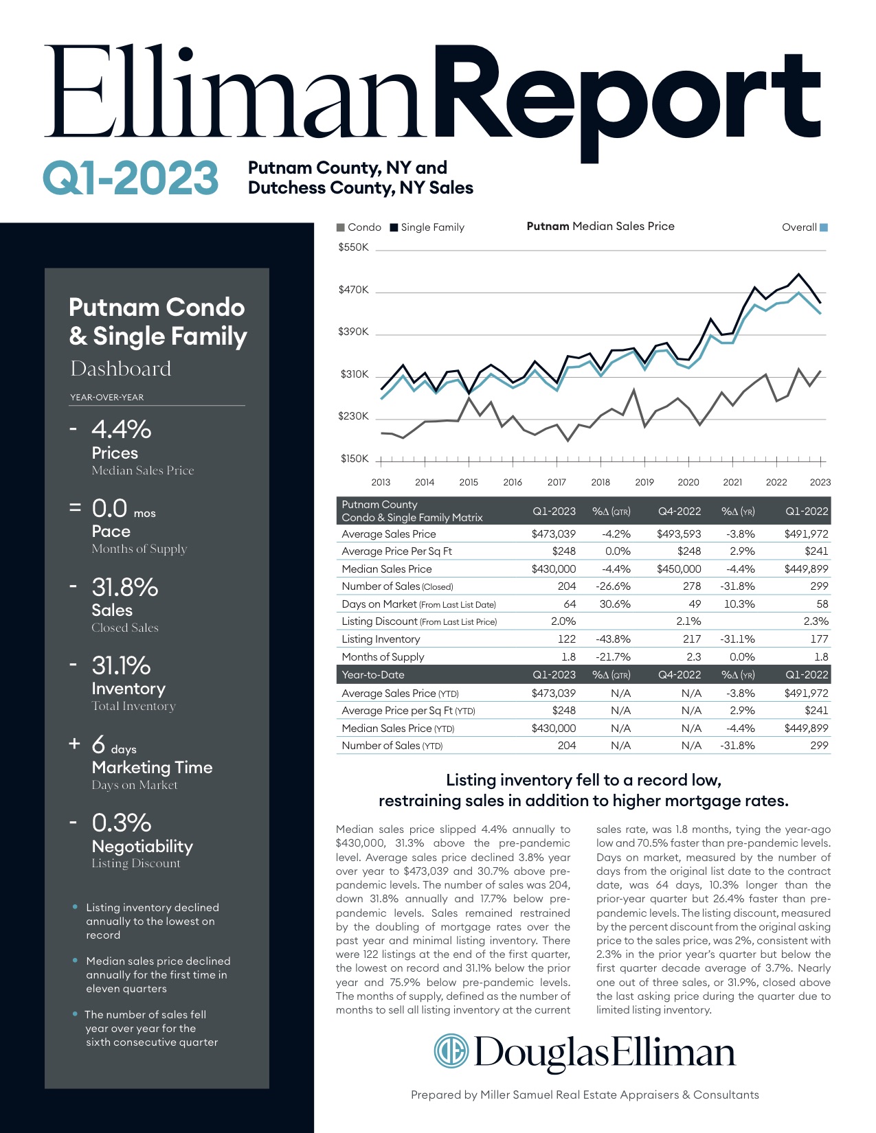 Median sales price slipped 4.4% annually to $430,000, 31.3% above the pre-pandemic level. Average sales price declined 3.8% year over year to $473,039 and 30.7% above prepandemic levels. The number of sales was 204, down 31.8% annually and 17.7% below prepandemic levels. Sales remained restrained by the doubling of mortgage rates over the…