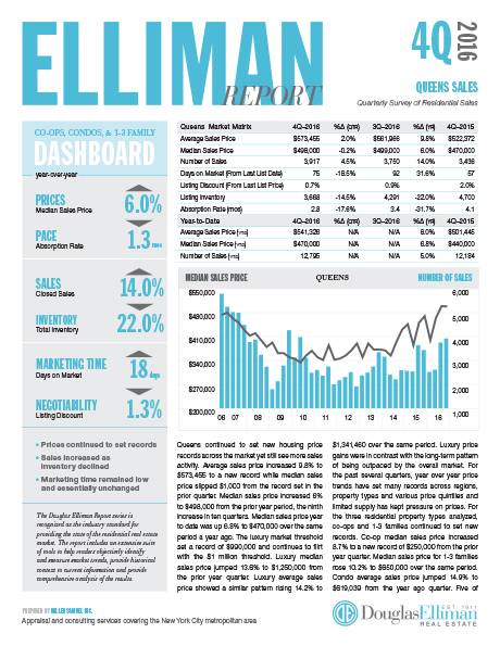 Queens continued to set new housing price records across the market yet still see more sales activity. Average sales price increased 9.8% to $573,455 to a new record while median sales price slipped $1,000 from the record set in the prior quarter. Median sales price increased 6% to $498,000 from the prior year period, the ninth increase in ten quarters. Median sales price year to date was up 6.8% to $470,000 over the same period a year ago. The luxury market threshold set a record of $990,000 and continues to flirt with the $1 million threshold…