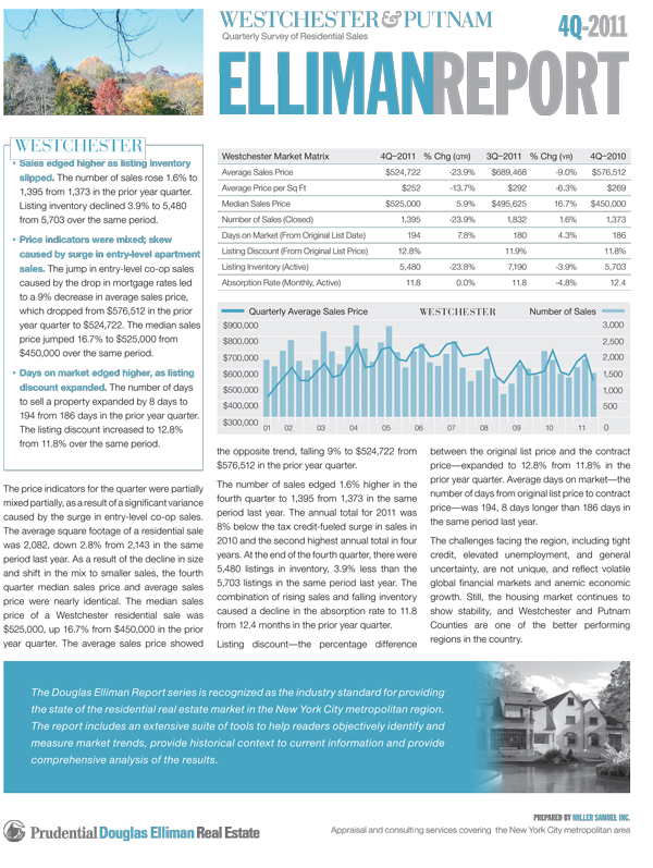 price of a Westchester residential sale was
