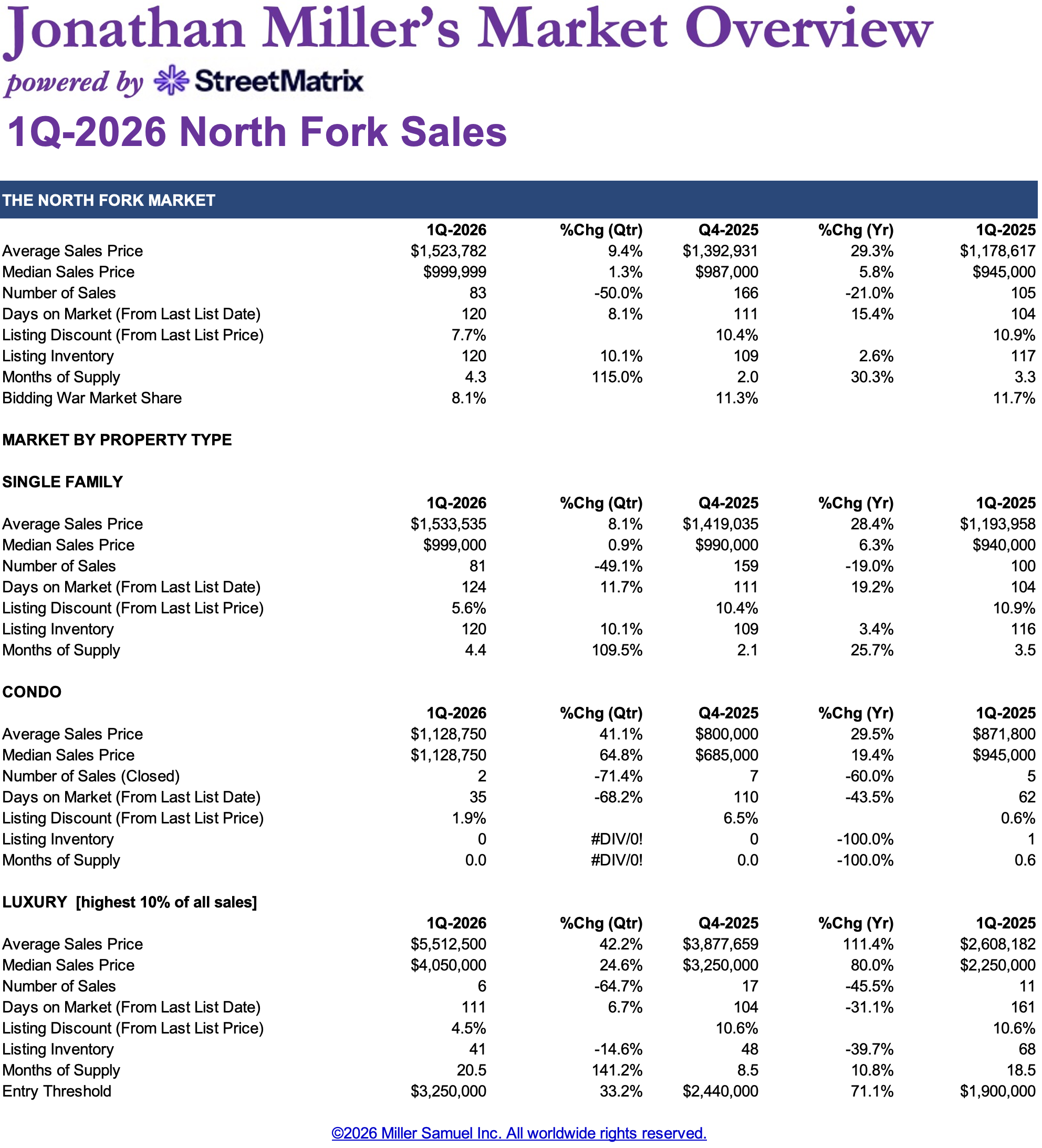 Jonathan Miller’s Market Overview: North Fork Sales 1Q 2026
