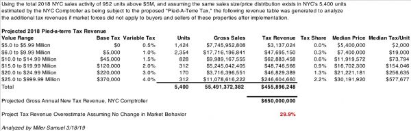 From the New York Times article of March 11, 2019: Lawmakers Support ‘Pied-à-Terre’ Tax on Multimillion-Dollar Second Homes‘