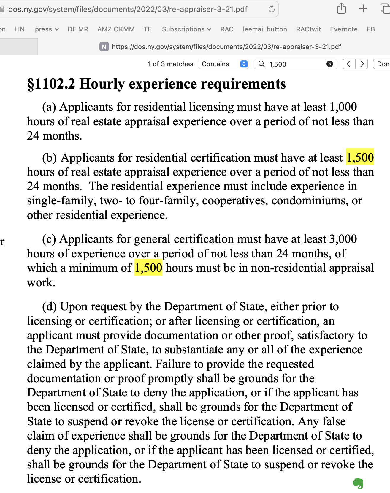 Brad Swinney, Chief Appraiser, Farm Credit Bank of Texas, Chair of the Appraiser Qualifications Board (AQB), had a hard time presenting and defending PAREA. He, like Michelle, was hand selected by Dave Bunton after the prior AQB chair was removed immediately because he wanted to explore the stunning lack of diversity in the appraisal profession. (We’re 98% white and dead last (400 of 400) as tracked by the BLS). So it follows that if the prior chair was removed immediately after trying to dig into the appraisal industry’s lack of diversity, then it’s just a hop, skip, and jump to assume that Brad was brought in to follow Dave Bunton’s position of staying away from the topic. Brad mentioned several times that “someone” (me) was saying 1,500 hours of experience were required, yet he stated only 1,000 hours were required for residential certification experience. As the AQB chair, he was uninformed. I was referring to the New York State requirement for 1,500 hours as a New York City appraiser, as noted on the New York State website.