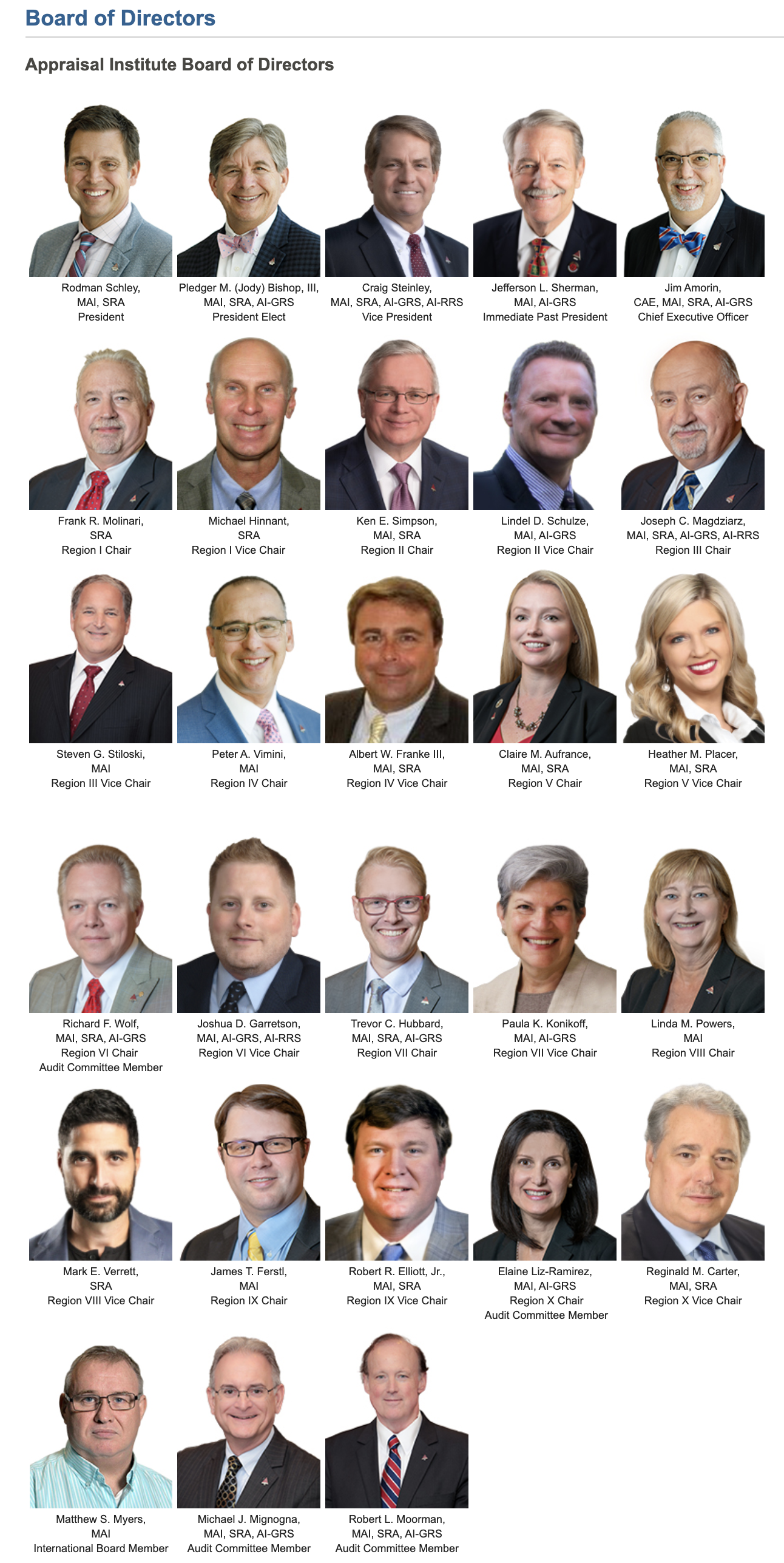 Here is a snapshot to memorialize the 2021 Appraisal Institute Board of Directors: