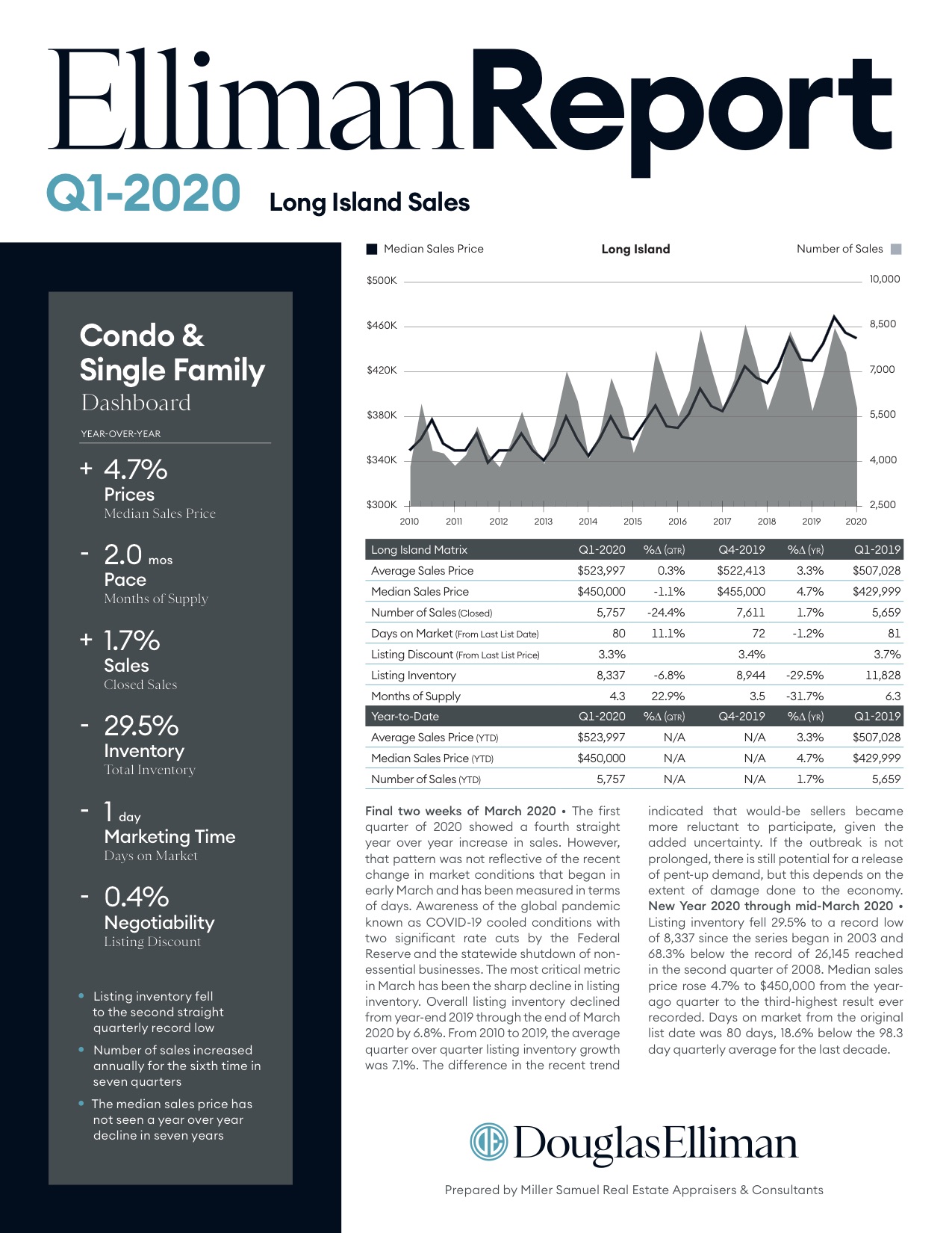 Final two weeks of March 2020 • The first quarter of 2020 showed a fourth straight year over year increase in sales. However, that pattern was not reflective of the recent change in market conditions that began in early March and has been measured in terms of days. Awareness of the global pandemic known as COVID-19 cooled conditions with two significant rate cuts by the Federal Reserve and the statewide shutdown of non…