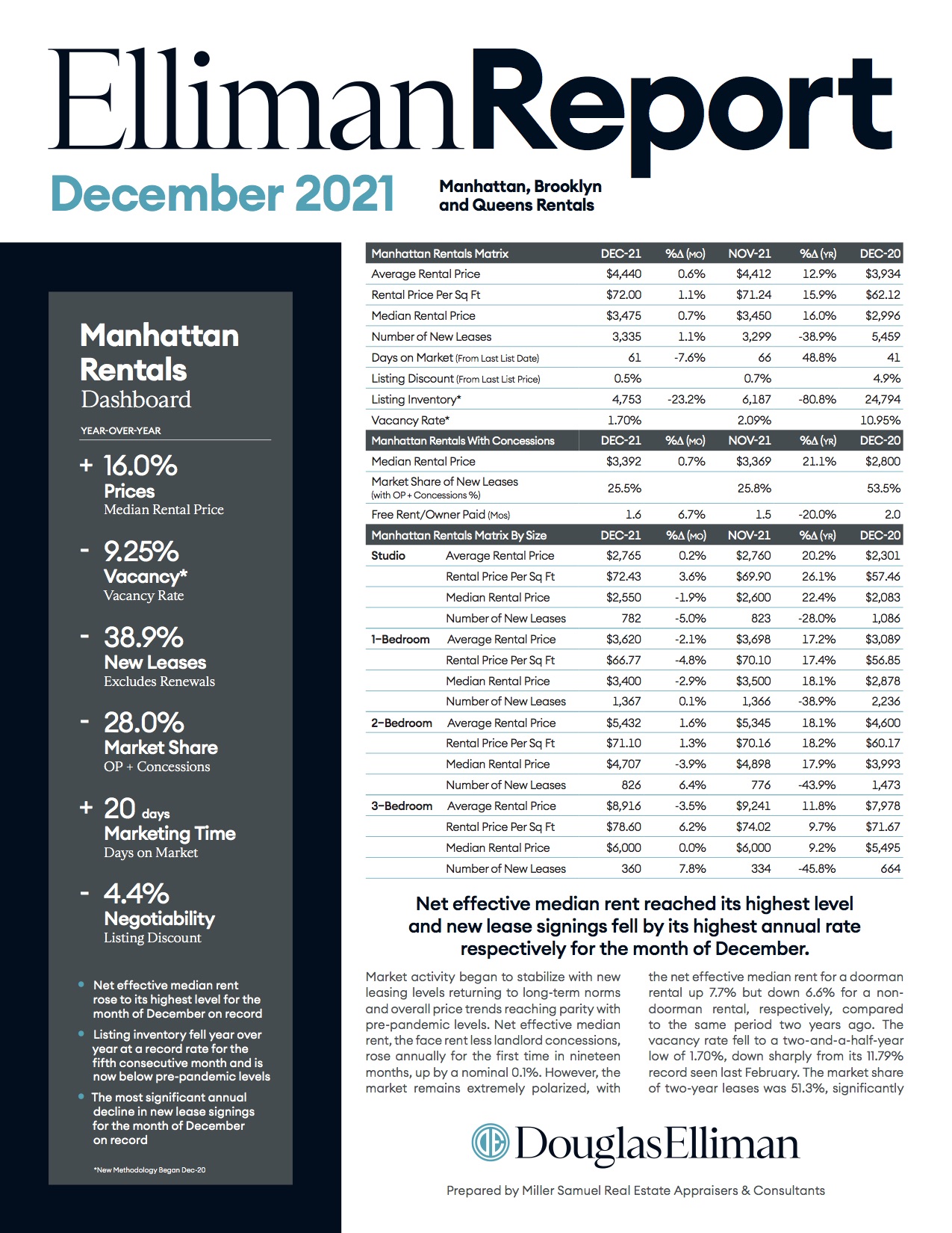 MANHATTAN Market activity began to stabilize with new leasing levels returning to long-term norms and overall price trends reaching parity with pre-pandemic levels. Net effective median…