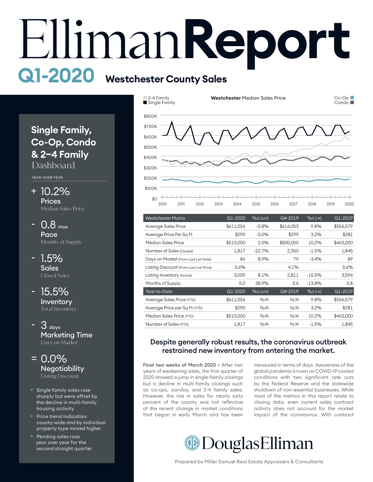 Final two weeks of March 2020 • After two years of weakening sales, the first quarter of 2020 showed a jump in single-family closings but a decline in multi-family closings such as co-ops, condos, and 2-4 family sales. However, the rise in sales for nearly sixty percent of the county was not reflective of the recent change in market conditions that began in early March and has been…